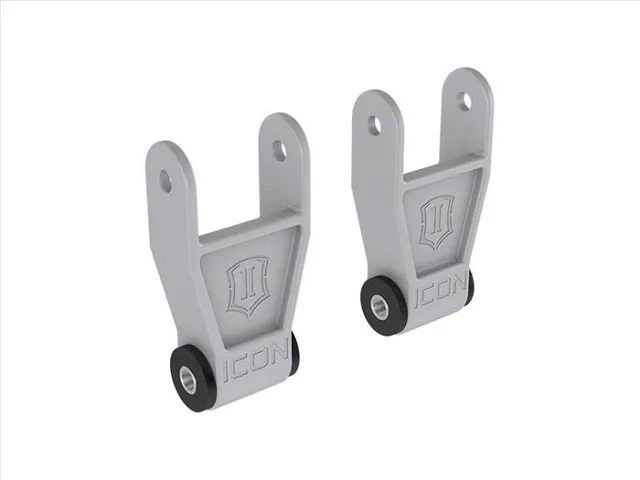 The ICON Vehicle Dynamics Billet 1-Inch Lowering Shackle Kit is a durable, lightweight suspension upgrade made from precision-machined billet aluminum. It lowers ride height by 1 inch, enhancing vehicle stability, handling, and appearance, while remaining easy to install and comfortable to ride.